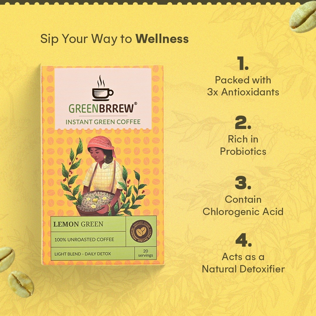 Lemon Green Coffee| 100% Unroasted Coffee | Light Blend - Daily Detox (20 Sachets, 60g)