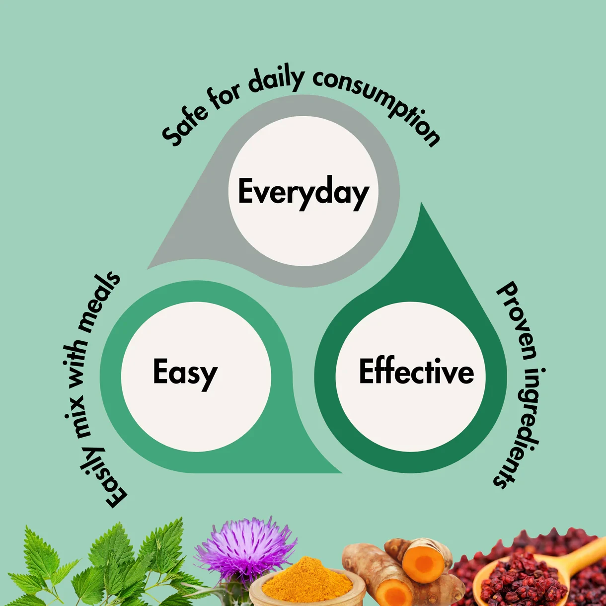 Specially formulated to combat the detrimental effects of toxin exposure from medicines, antibiotics, environmental pollutants, and infections, which can slowly deteriorate the liver. This potent blend of natural ingredients, works synergistically to promote detoxification, repair damage & promote healthy liver.