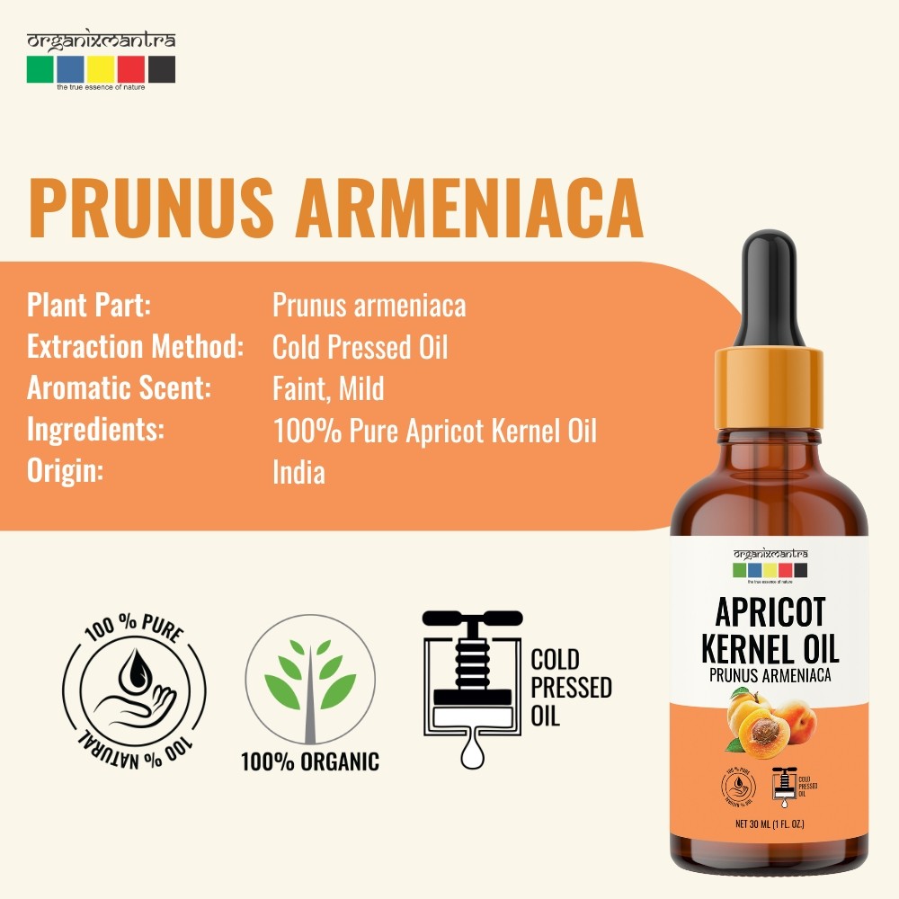 Organix Mantra Apricot Kernel Oil, 100% Pure, Natural & Cold Pressed Organic Oil, 30ML