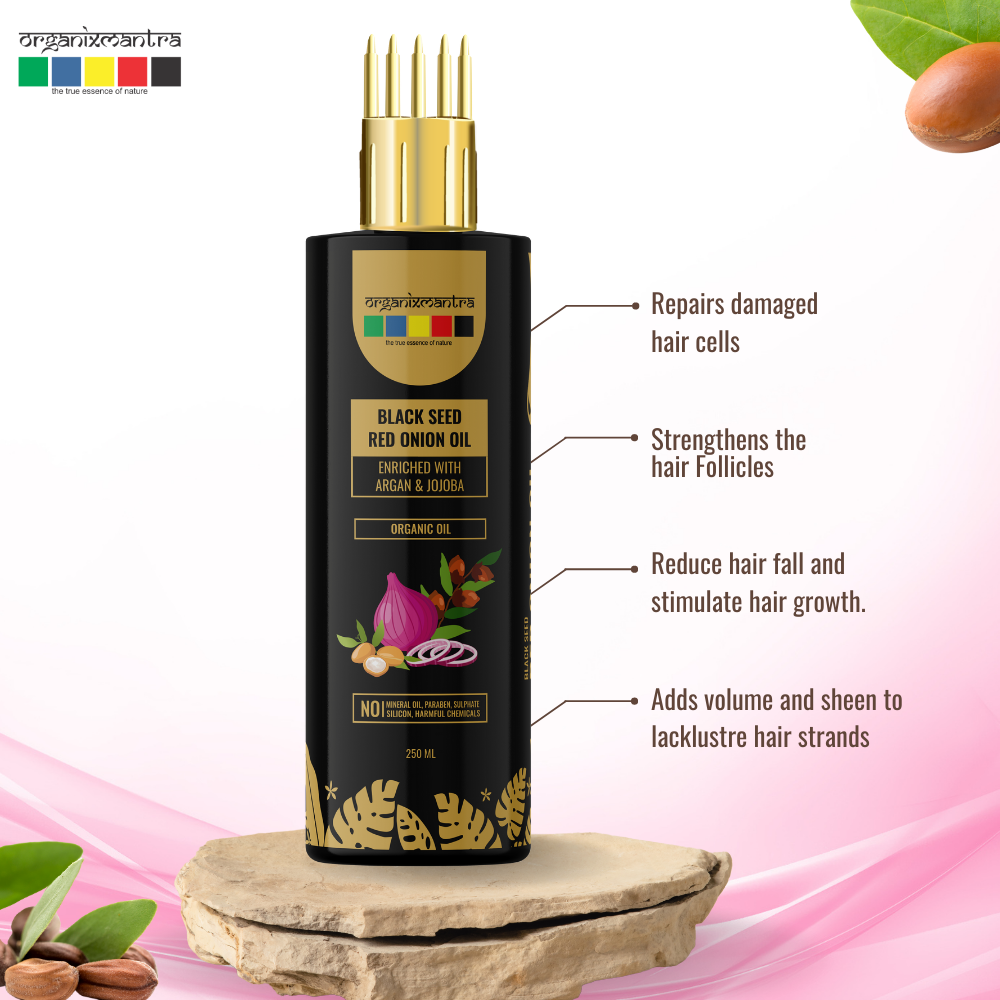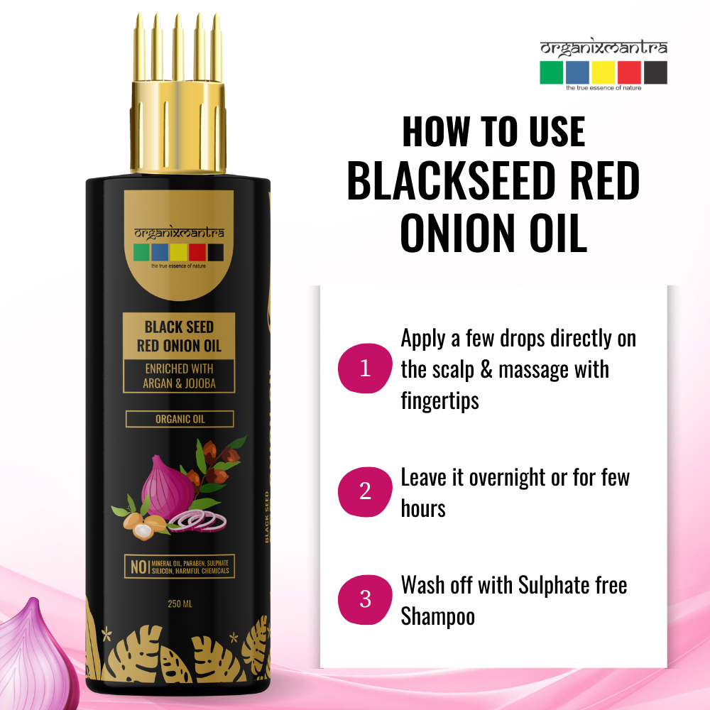 - SHINE & SOFTNESS: Black Seed Red Onion Oil may help enhance your hair's natural shine and softness, giving it a more luxurious feel.