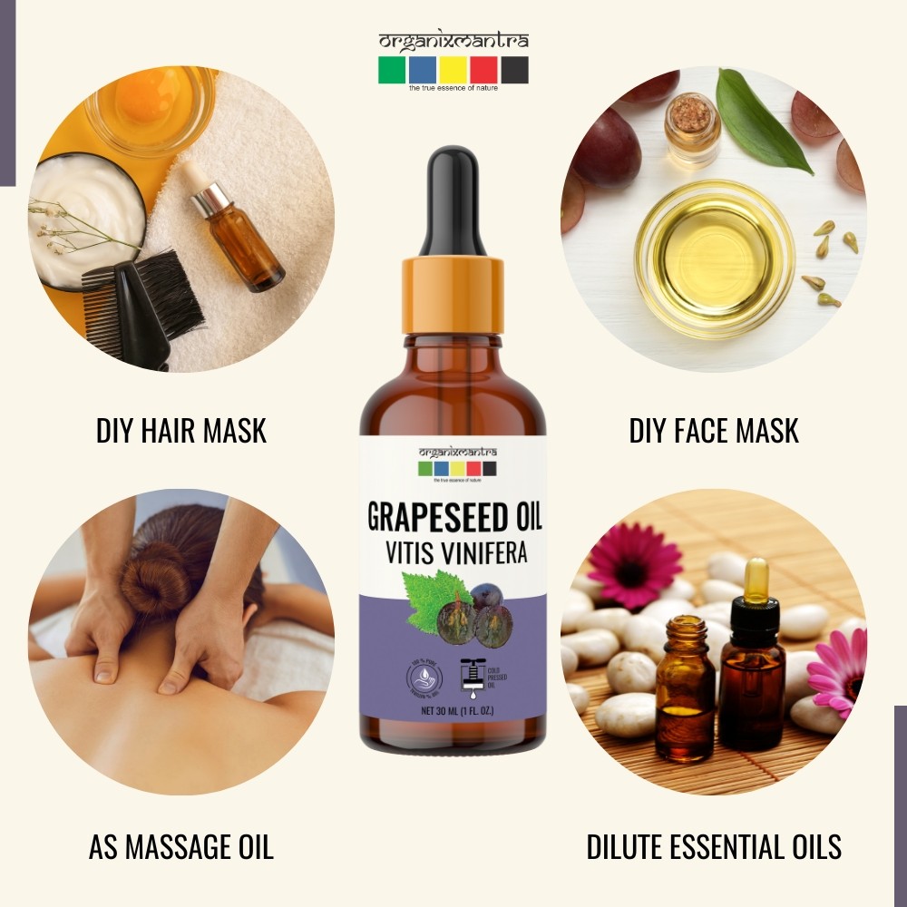 - MASSAGE OIL: With its lightweight texture, Grapeseed Oil is an excellent choice for Massage oil, either on its own or blended with other Essential Oils.