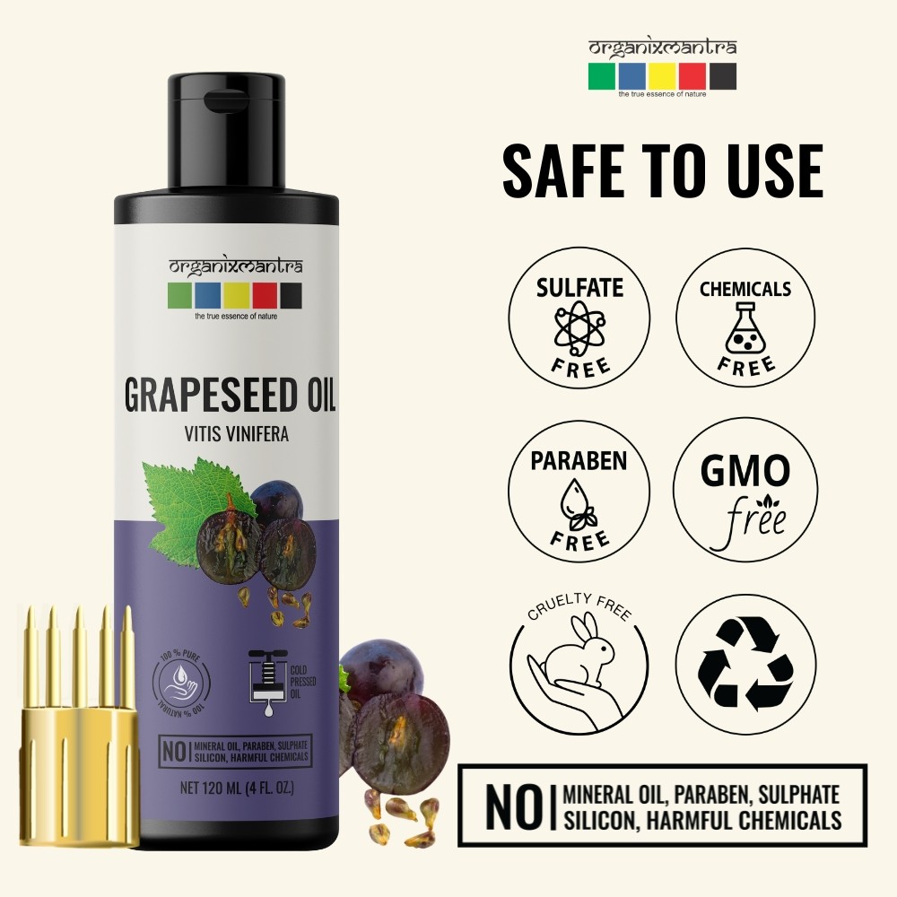 Organix Mantra Grapeseed Oil, 100% Pure, Natural & Cold Pressed Organic Oil, 120ML