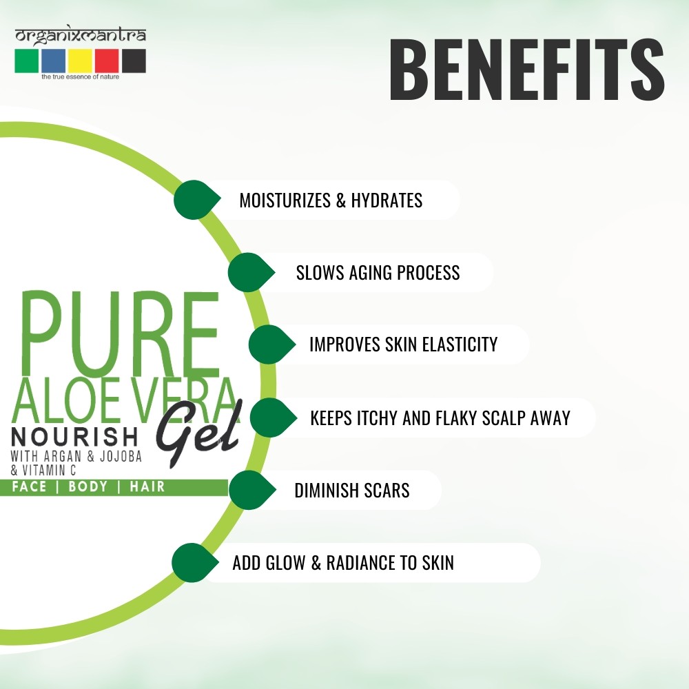 BENEFITS OF THE ALOE VERA GEL: Suitable for all skin types and deep nourishes the area where applied. Aloe Vera has healing and anti-inflammatory properties. Can do wonders for your skin. Women can use Aloe Vera gel post waxing, threading and shaving to soothe the skin. Men can use it as a soothing after-shave gel. Pamper your skin with Aloe Vera after a day out in the hot sun. It is excellent for aftersun skincare.