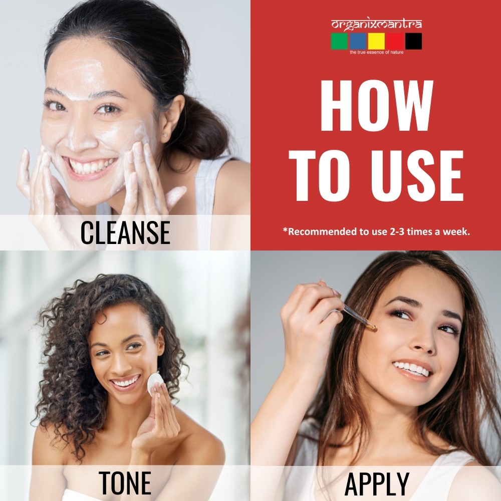 - Use a natural toner like Floral Fusion / Rose Water (for oily skin) OR Witch Hazel Astringent (All Skin Types).