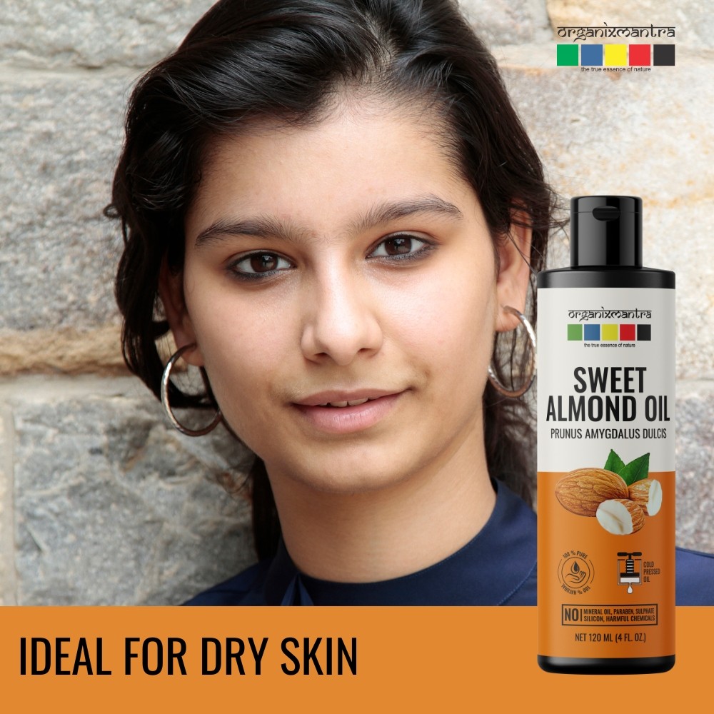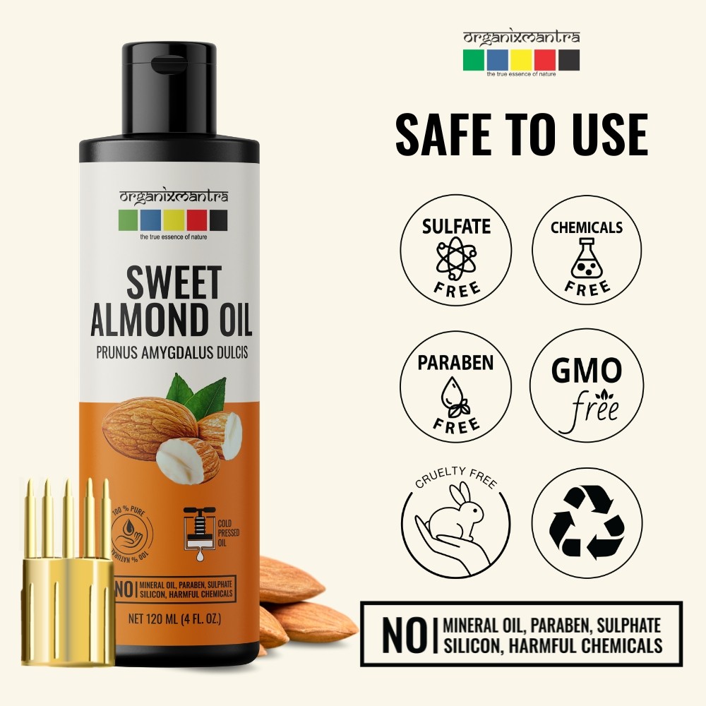 Organix Mantra Sweet Almond Oil, Cold Pressed Organic Oil, 120ML x 2
