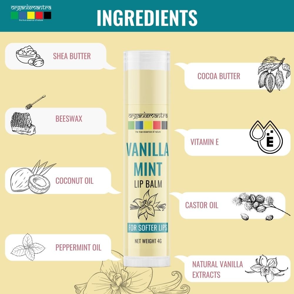 NATURAL ANTIOXIDANT FOR LIPS: The Vanilla Mint Organic Lip Balm with Vitamin E acts as an antioxidant that is known to help protect the lips from oxidative stress and environmental damage.