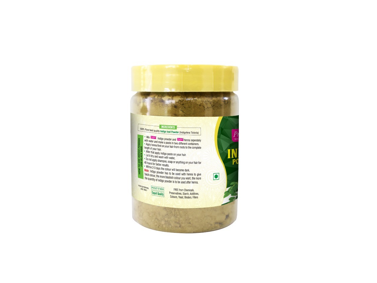 How to use: Mix the Indigo Powder in warm water to prepare a paste. Apply on your hair, using gloves if applying with your hands, or a spatula. Leave on for 45 minutes, or more, depending on preferred intensity .For best result use henna and wash it off and then use indigo powder.
