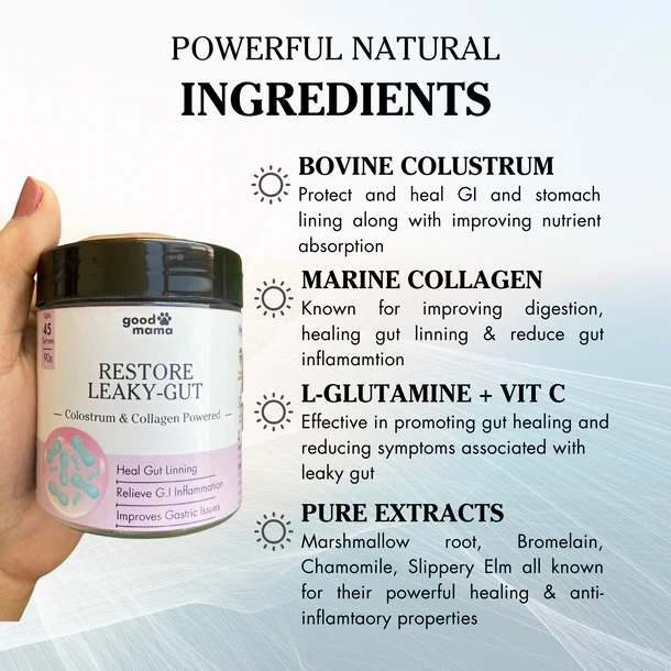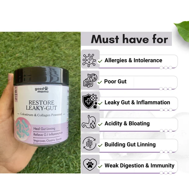 Restore Leaky Gut is a powerful, all-natural supplement designed to repair and strengthen your pet's gut lining. With key ingredients like bovine colostrum, marine collagen, vitamin C, and L-glutamine, it helps reduce inflammation, rebuilds gut integrity, and improves nutrient absorption.