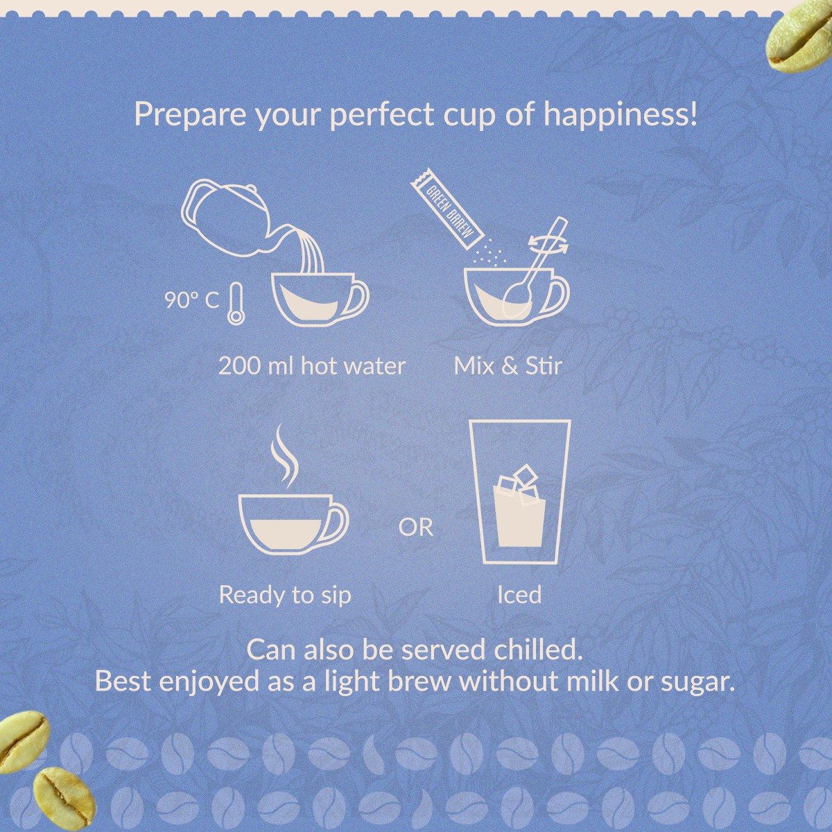 Instant strong green coffee, a robust brew crafted for those who appreciate the bold flavor. Enjoy the rich taste and invigorating aroma of our green coffee blend, offering a satisfying experience that enlivens your senses sip by sip. Embrace the boldness and vitality of our brew, ideal for energizing your day.