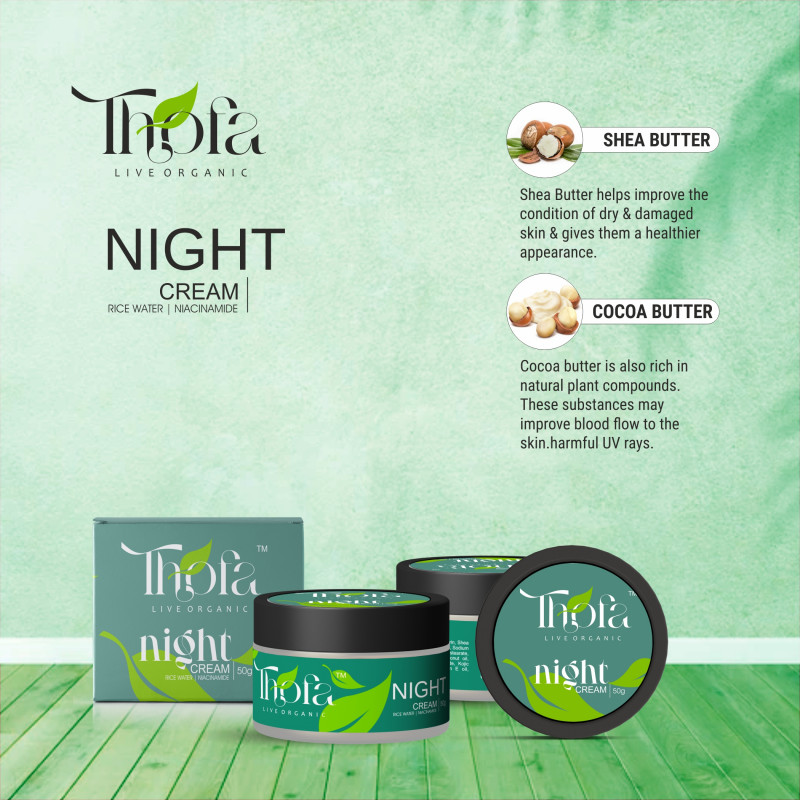 - Natural Ingredients: Thofa Night Cream contains all-natural ingredients like Rice water, Cocoa Butter, Shea Butter, and Olive Oil, and is free of parabens and sulfates.