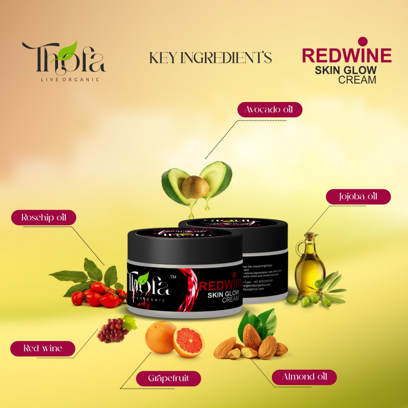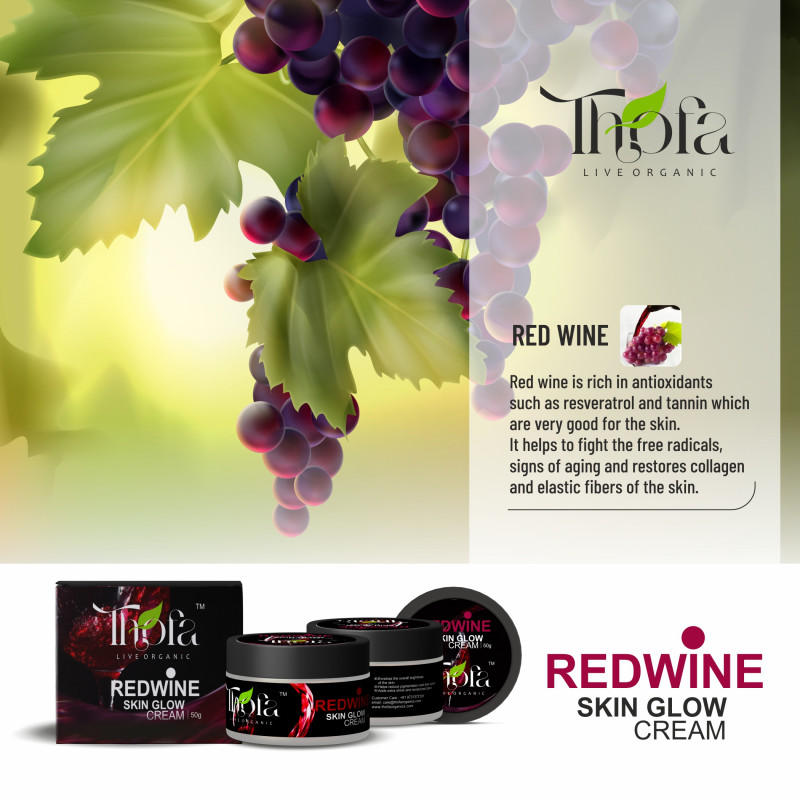 Thofa Red Wine Skin Glow Day & Night Cream – 50 GM With Rosehip oil, Nicotinamide, and Avocado oil. Almond oil. Pomegranate Jojoba oil