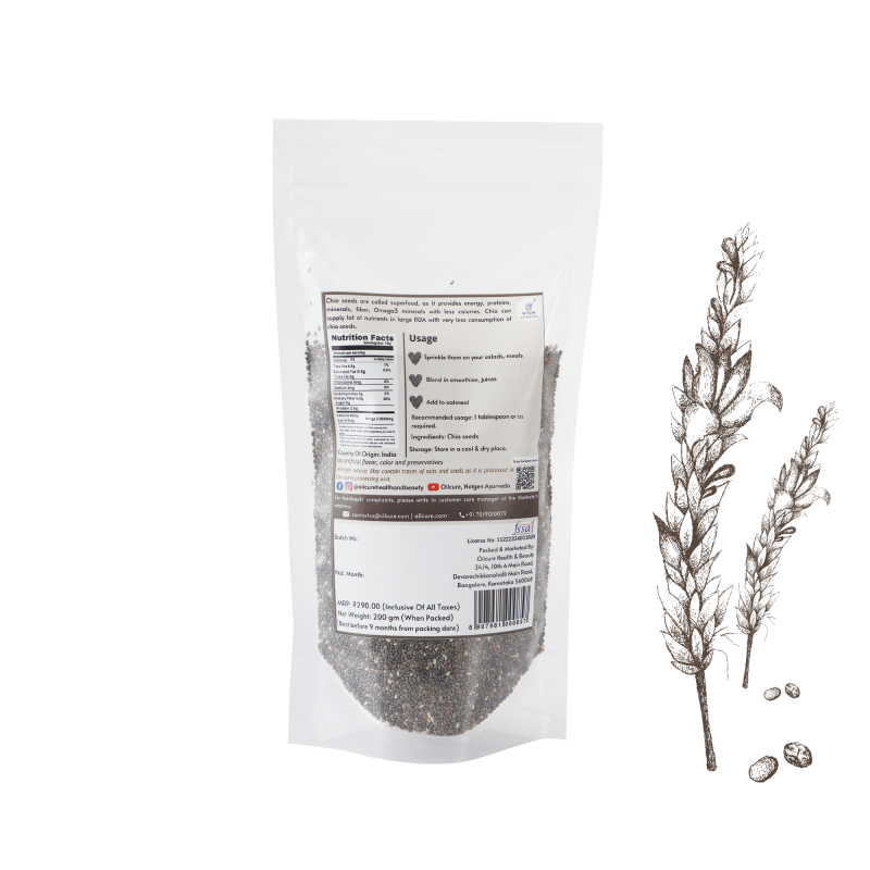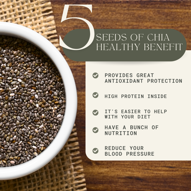 Chia Seeds are packed with essential nutrients, including fiber, protein, healthy fats, vitamins (like B-vitamins), and minerals (such as calcium, magnesium, and zinc), promoting overall well-being.