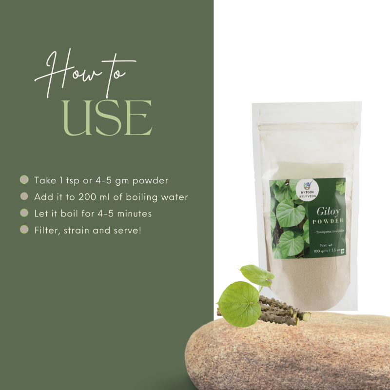 Tinospora cordifolia/ Giloy/ Guduchi/ Kwath has a lot of antioxidants present, which helps in higher immunity levels and delayed aging process. There are various other benefits as well which include stress buster, help in fevers, allergies, lower blood sugar.